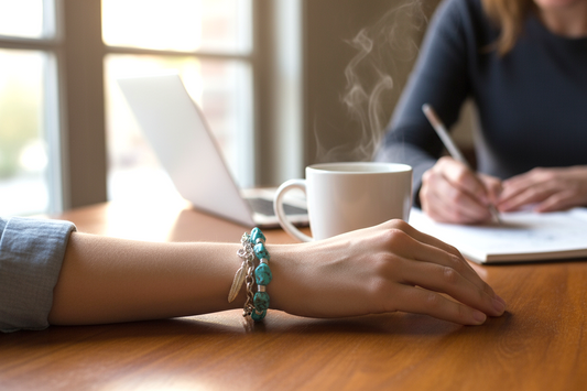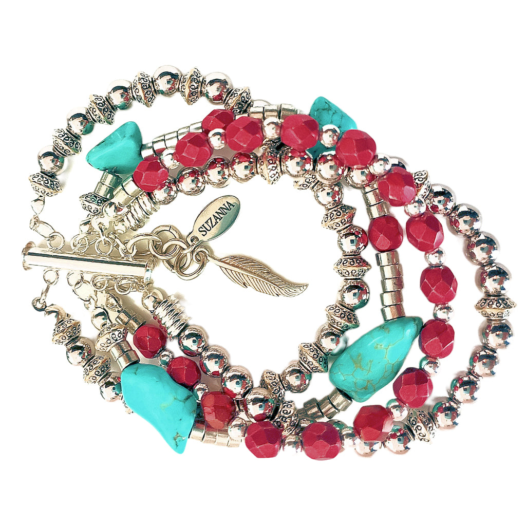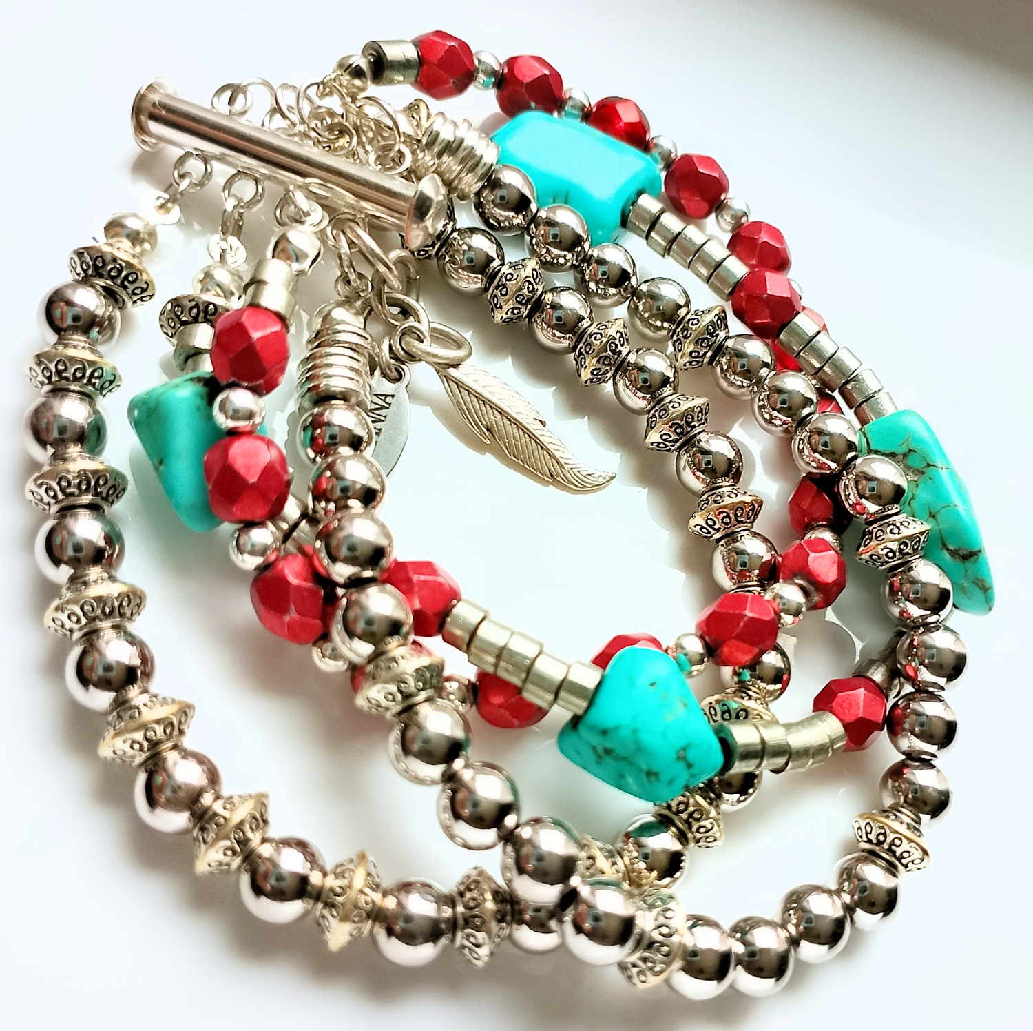 Natural Turquoise Stone, Czech Glass & Sterling Silver Beads Five-Strand Bracelet
