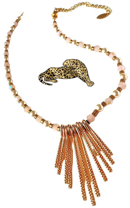 Peach Opal AB Crystal Bead & Swarovski Cream-Rose Crystal Pearl Choker