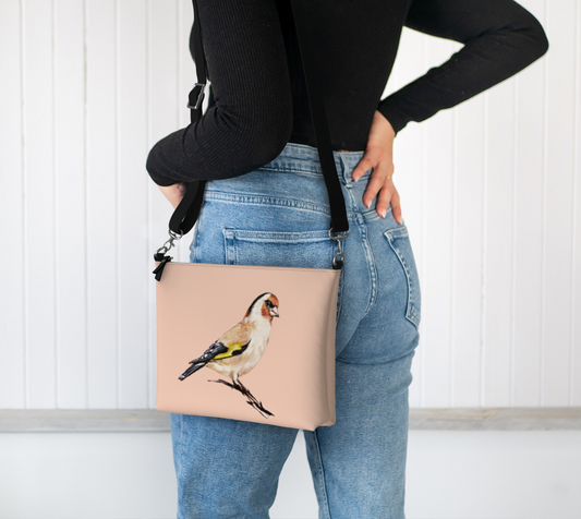 Finch on Antique Coral Vegan Leather Crossbody Purse