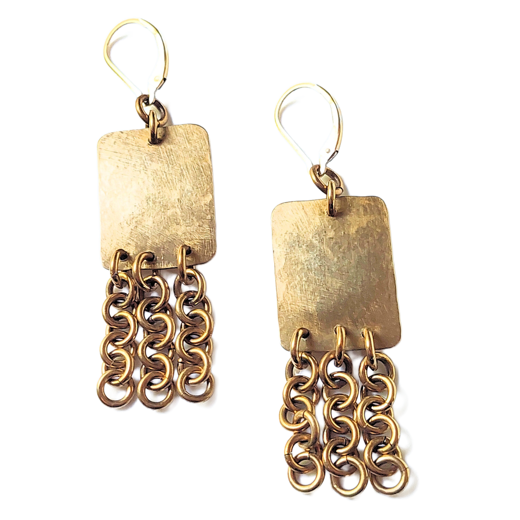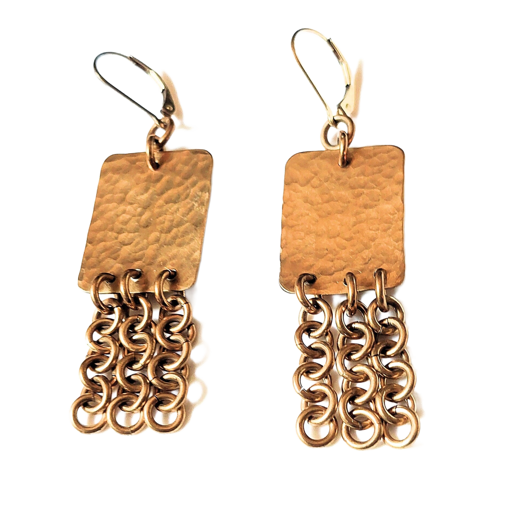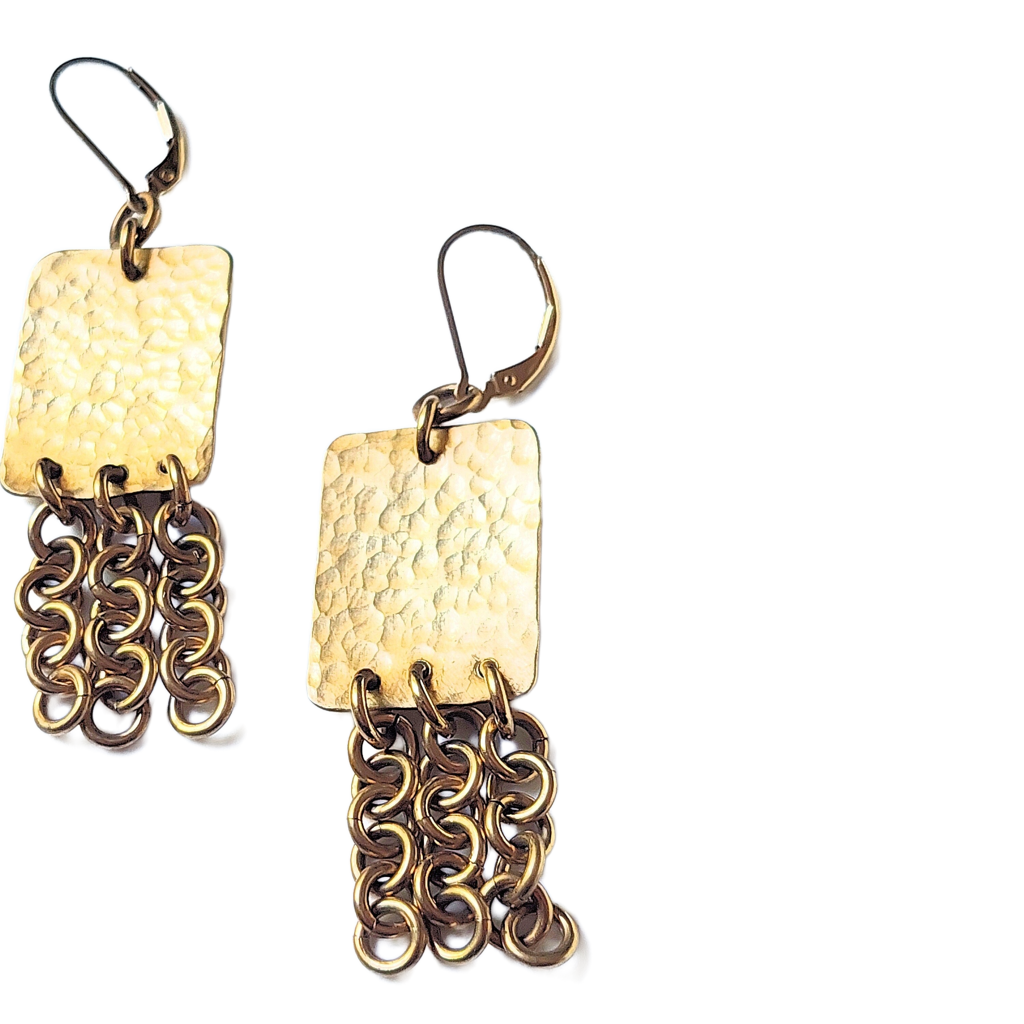 Hammered Bronze Rectangles w/Chains Earrings