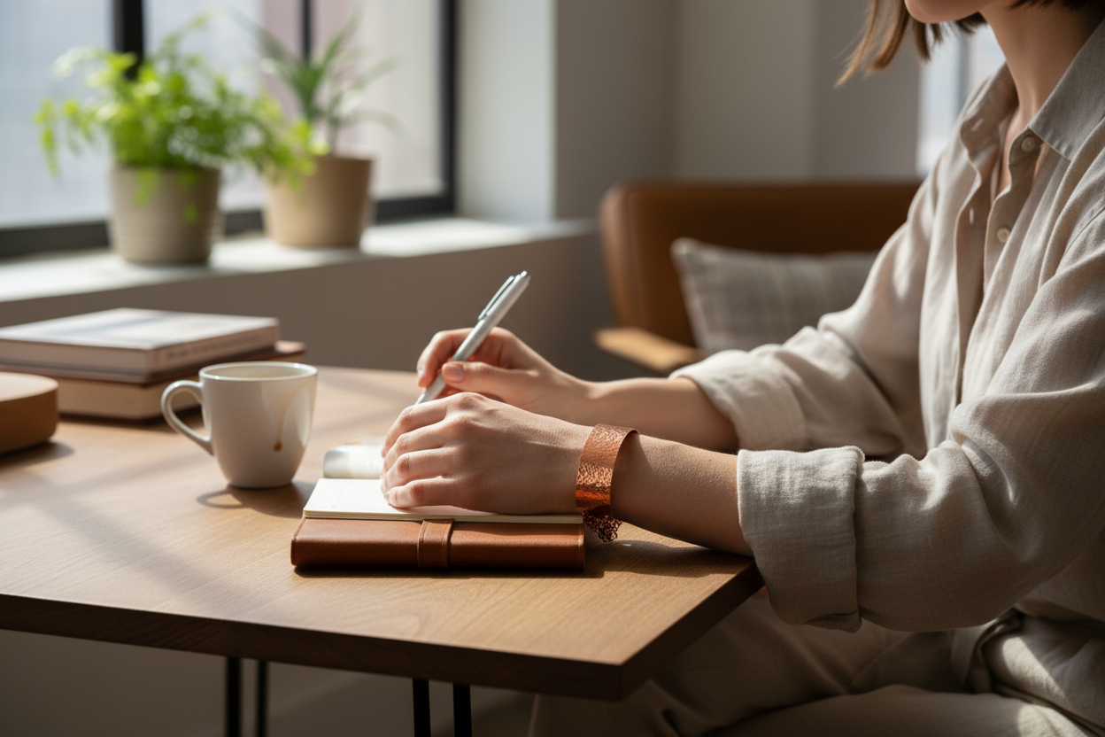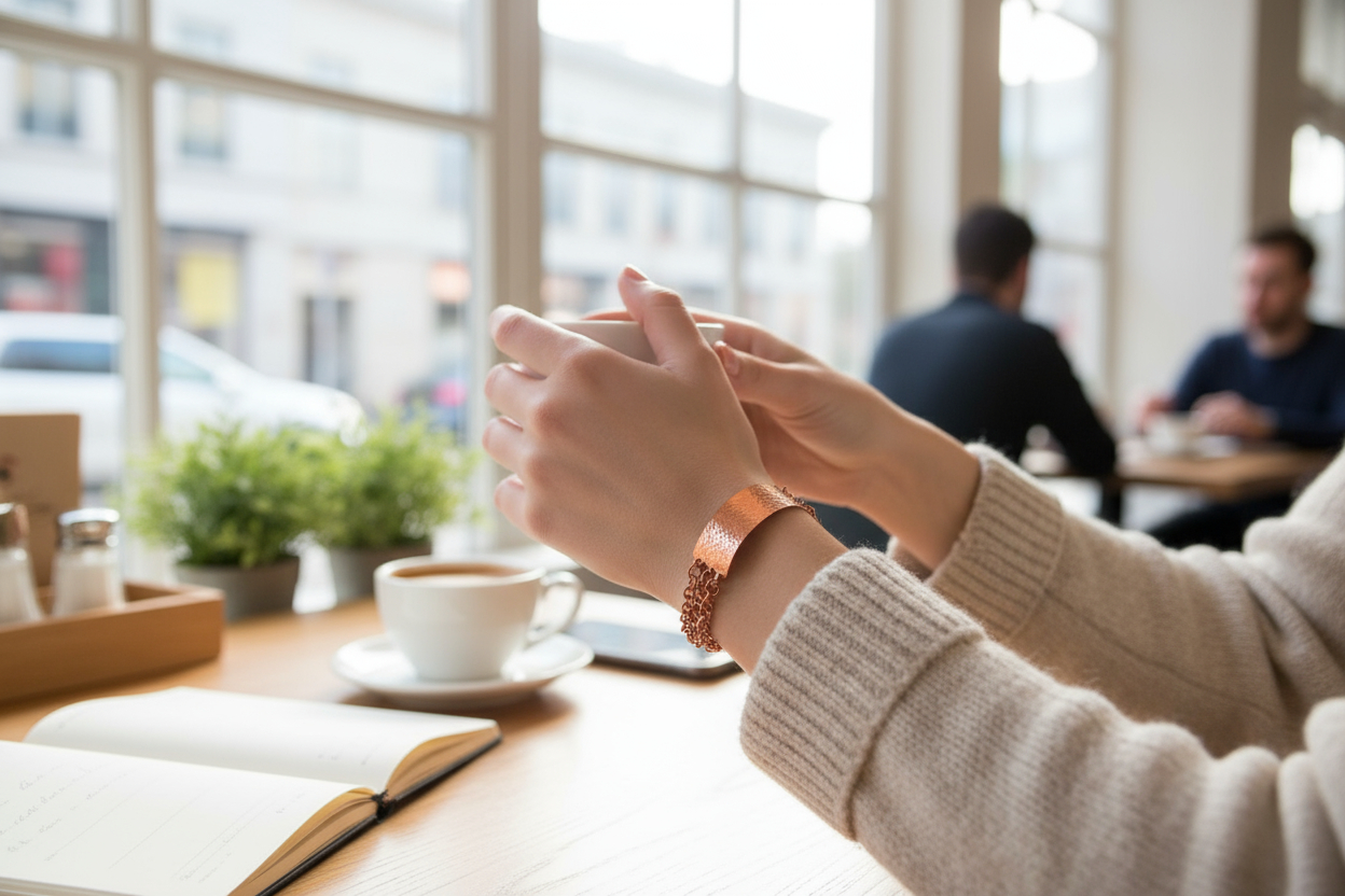 Hammered Copper Half-cuff and Chain Bracelet