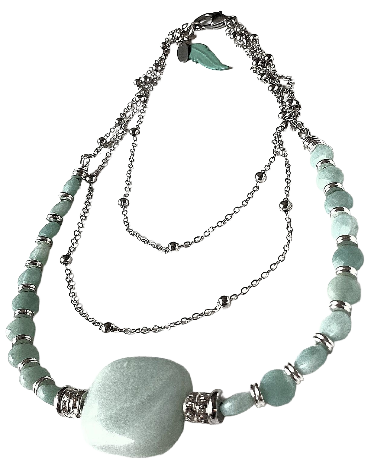 Three-Strand Amazonite Pendant & Faceted Coin Beads With Stainless Steel Satellite Chains Necklace